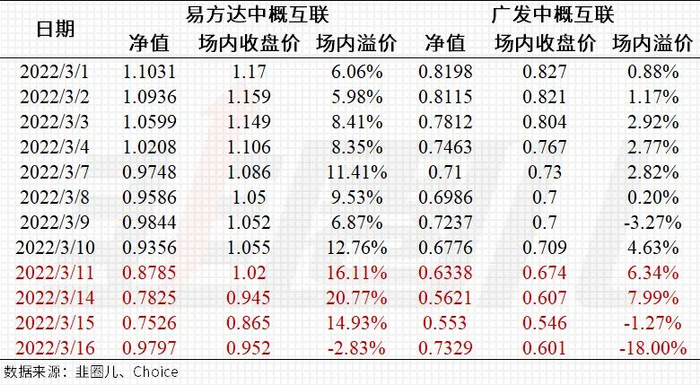 我们可以看到,广发的这只中概互联ETF,如果刨除掉标红的涨跌停的这几天,整体的溢价率确实没那么高。