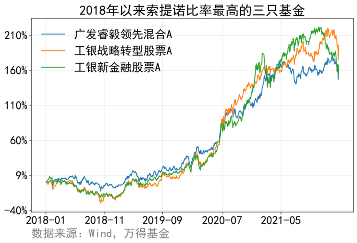 其中,索提诺比率最高的三只基金业绩走势如下: