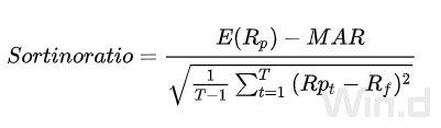 索提诺比率克服了上述夏普比率缺陷。索提诺比率只专注于定义下行偏离度,也就是说只考虑最低可接受收益(MAR)值以下的偏离,这部分是投资者感觉到“痛”的地方。
