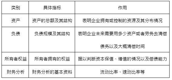 资产负债表是指反映企业在某一特定日期财务状况的报表。采用账户式结构,分为左右两方,左方按照流动性递减的次序,列示资产各项目,反映全部的资产分布及存在形态;右方同样按照流动性递减的次序列示负债以及所有者权益各项目,反映其内容及构成情况。资产负债表左右两方平衡,核心灵魂是“资产=负债+所有者权益”。