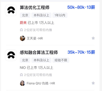 Lyla表示,算法求职者心里会对企业有个意愿排序,通常是:蔚小理>互联网造车厂(小米、百度等)>供应商。