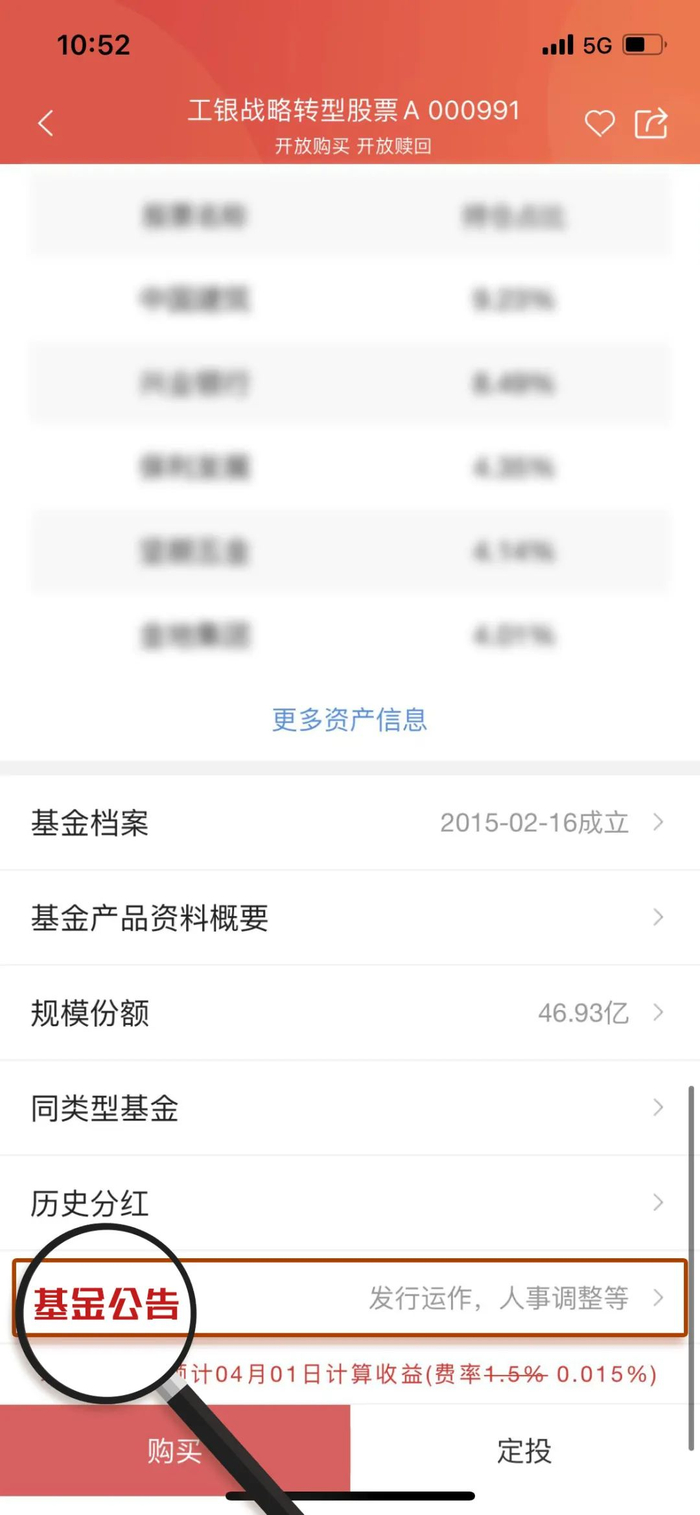最简单的就是去基金公司官网或者APP啦。还是以工银战略转型为例。
