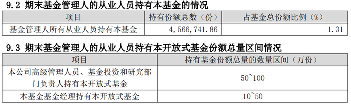 基金公司从业人员持有数量在一定程度上则说明了公司员工对这只基金的认可程度。
