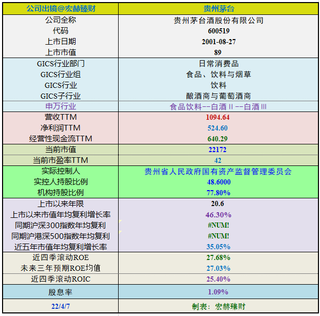 ◈贵州茅台该指标【5】优【1】良(6优企业很少,5优值得你重视)