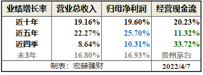 贵州茅台过去5年归母净利润复合增速:25.7%;过去10年是19.6%;近四季净利润复合增速12.3%,未来3年一致预期归母净利润复合增速为16.9%。