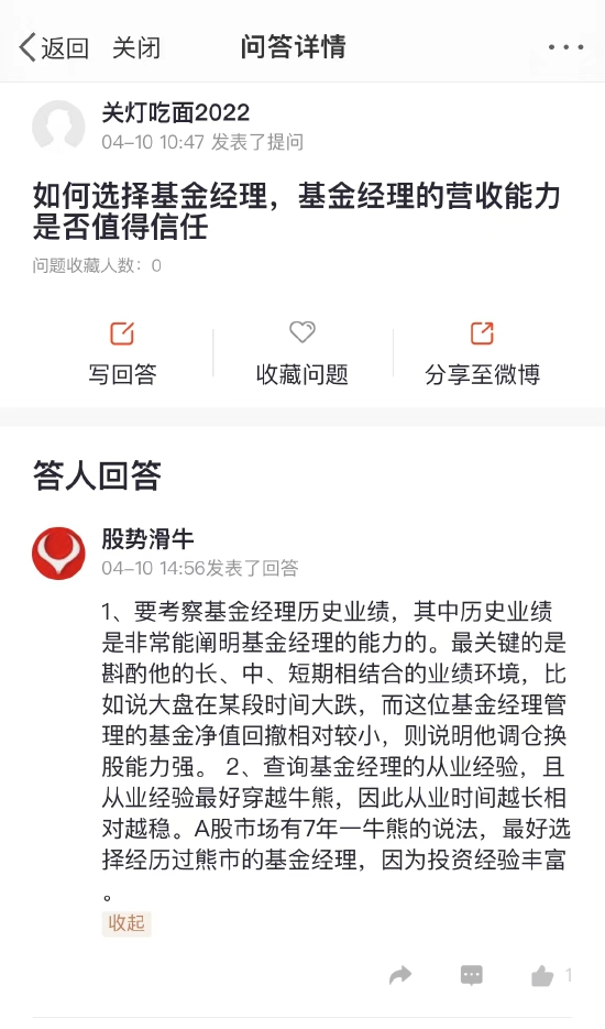 精选提问1:如何选择基金经理,基金经理的营收能力是否值得信任?