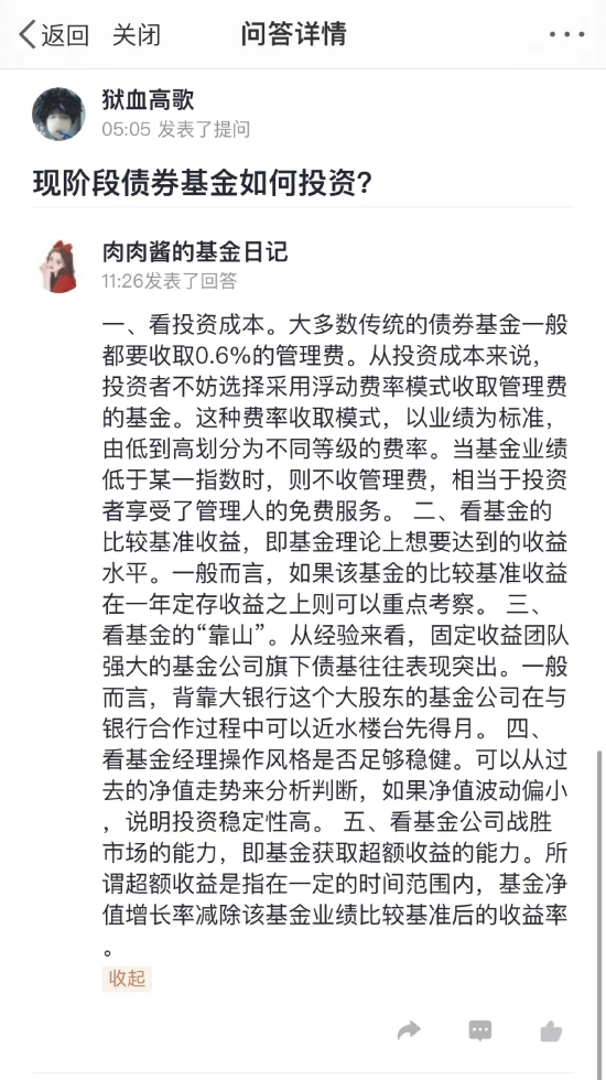 基金问答可以帮您快速匹配最适合的投资对象。您可以在基金问答中向众多资深基金大V提出你关于投资基金的疑问,基金大V们会迅速的回答你的问题。你也可以浏览其他基友提的问题和大V的解答,让你的投资力不断UpUpUp!