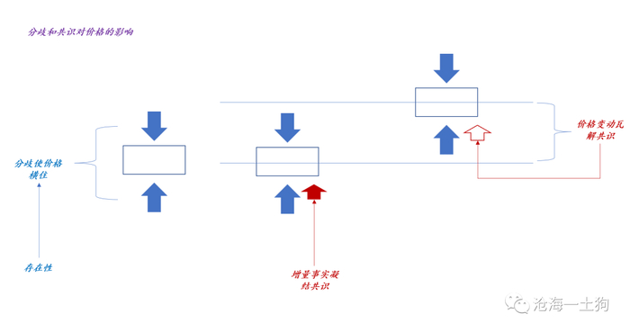 也就是说,分歧使得价格在某一个水平稳定住;共识使得价格朝着某个方向运动。