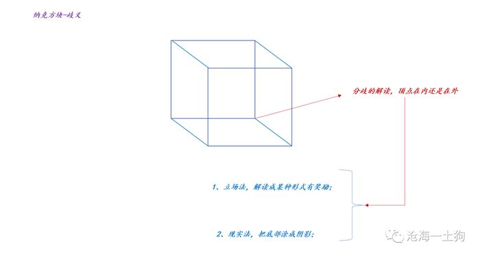 当我们盯着纳克方块时,我们的大脑会兴奋地对那个顶点做出分歧式的解读:一会儿解读为顶点在外面,一会儿解读为顶点在内部。