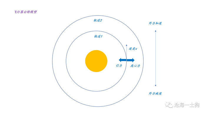 初始状态下,飞行器以速度v为绕行星公转,此时,引力和离心力平衡——对抗,行星稳定在轨道1之上。
