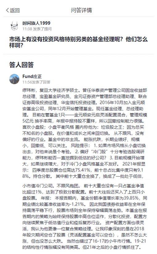 基友@时间旅人1999 发表了提问:市场上有没有投资风格特别另类的基金经理呢?他们怎么样啊?
