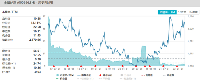 当前全指能源市盈率-TTM为10.88,处于历史12.11%分位水平;市净率为1.08,处于历史58.20%分位水平;全指能源市盈率相对偏低,市净率并不算低估。