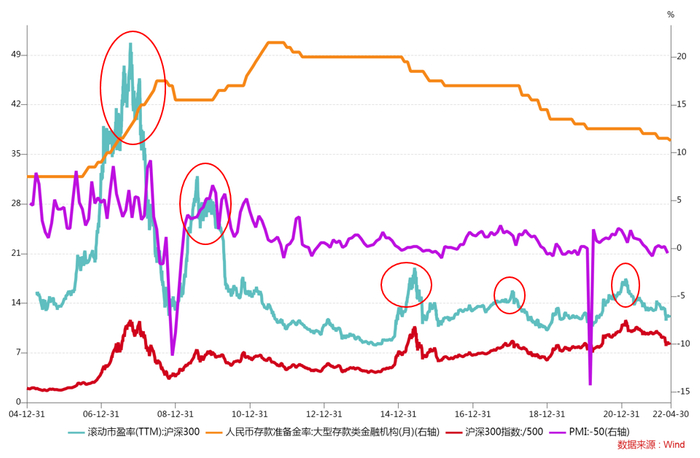 这一点值得高度重视。历史上,有多次政策宽松而未能逆转熊市并改变对市场的悲观预期。主要是因为投资者认为实质上有其他的矛盾且矛盾并不会因为降息降准得到解决。比如2012年的降息没有解决经济下行的矛盾,2015年6月的降息降准阻挡不了泡沫的破裂,2018年的降准无法回应贸易摩擦的走向问题。目前来看,2022年的降准降息可能作用有限。