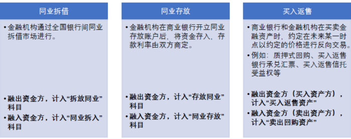 所以,方法三是最便利、也是现实中最普遍的做法。这时我们就需要引入一个重要的市场:银行间货币市场。银行在货币市场上进行资金交易的方式即前文所说的同业业务,包括同业拆借、同业存款、买入返售等。