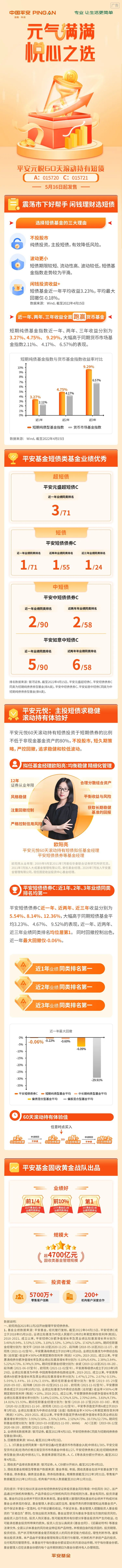 作为老牌基金公司,平安基金已累计为超1.3亿个人投资者和机构投资者提供专业、全面的资产管理服务。截至2021年末,公司共管理160只公募基金,总资产管理规模超7000亿元。公司更有逾百人的超大投研团队,业务线涵盖固收、权益、指数等六大板块,实力深厚。另外,平安基金固收类基金管理规模也已超4700亿元,备受投资者青睐。其中零售客户累计超5700万,深度合作机构也超200家,短债基金就是隶属固定收益七大产品线之一。