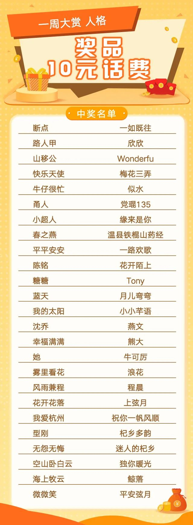 小编将于后台联系获奖的客官,话费将于5月20日(本周五)前充值到中奖客官的手机号码中,请各位客官耐心等待~