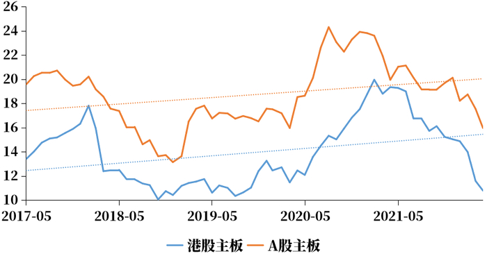 港股主板与A股主板市盈率比较