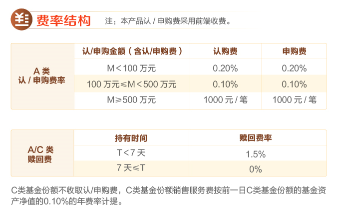答:本基金分为A、C类份额,其中C类份额申购费为0,只需持有大于等于7天赎回费也为0,可大幅提高现金管理效率和投资体验。