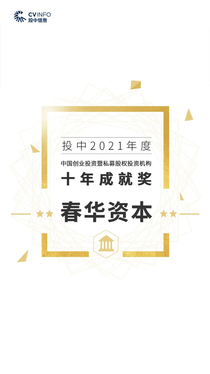 “投中2021年度中国创业投资暨私募股权投资机构十年成就奖”奖项由春华资本、招商资本、钟鼎资本获得;