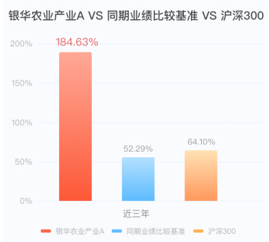 受益于农业板块的长期上涨和基金经理优选细分行业、个股的能力,银华农业产业基金的中长期业绩优异。基金定期报告数据显示,截至2021年12月31日,银华农业近三年增长率为184.63%,大幅跑赢同期业绩比较基准的52.29%和沪深300的64.10%。