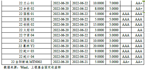 二级市场:上周美国CPI超预期导致10Y美债收益率一度上行至3.5%左右,同时国内5月经济数据好转,利空情绪有所发酵,中长端国债收益率小幅上行。具体来看,截至上周五收盘,(1)国债方面,1Y国债收益率持平于2.01%;3Y国债收益率小幅下行1BP;5-10Y国债收益率上行2BP,10Y国债收于2.78%。(2)政金债方面,1Y期政金债收益率小幅下行0-1BP不等;7Y口行债表现最好,收益率下行4BP;其余期限的政金债收益率均下行0-2BP不等,10Y国开债收平于2.98%;(3)期限利差方面,上周长、短端品种收益率变化不大,国债10-1Y利差走阔2BP至77BP,国开10-1Y利差收窄1BP至93BP。