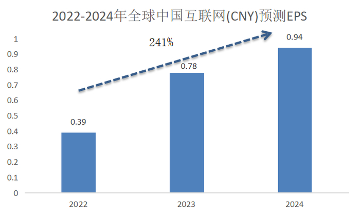 市场对全球中国互联网(CNY)未来的EPS(每股收益)预期较高,其中2022-2024年的预测EPS增长幅度高达241%,反映其未来的成长性较好。