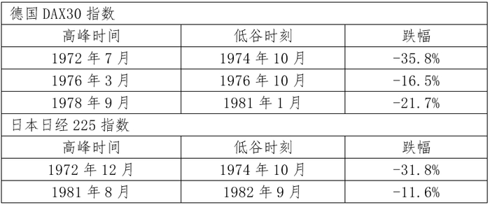 注:1970-1983年期间德国DAX30指数和日本日经225指数的回调, 数据来自Wind.