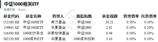 目前A股市场中证1000相关的ETF共4个,规模合计不超过30亿元。