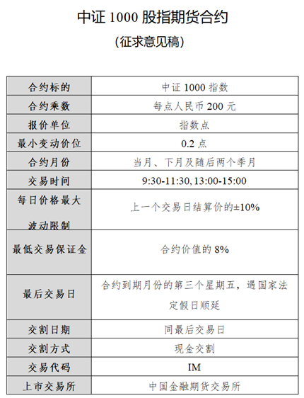 2022年6月22日,中国金融期货交易所在官网发出通知,宣布就中证1000股指期货和股指期权合约及相关规则向社会征求意见。