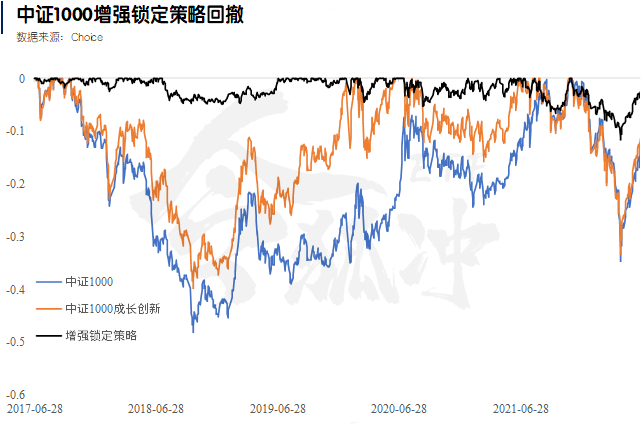 而且增强锁定策略的优势非常突出,近5年最大回撤只有12%,而中证1000指数的区间最大回撤接近50%。