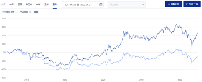 从近5年的走势上看,中证1000成长创新指数与中证1000指数之间的差距有逐步放大的趋势。