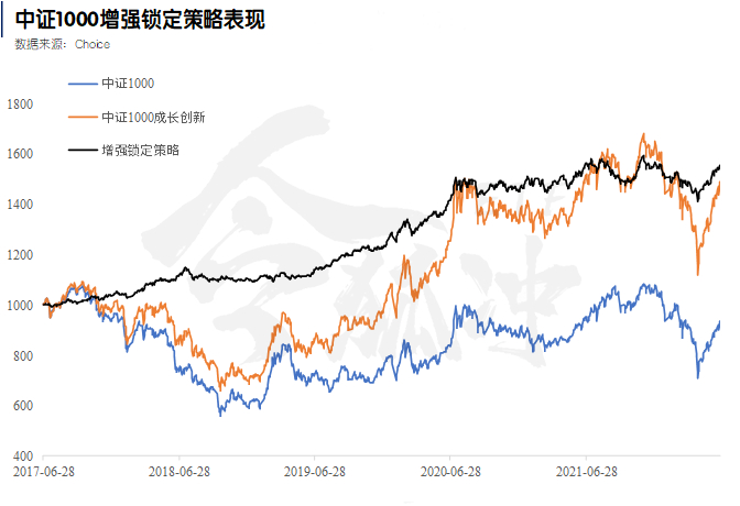 所以做多中证1000成长创新指数,同时做空中证1000指数(增强锁定策略),能够获得增强部分的α收益。
