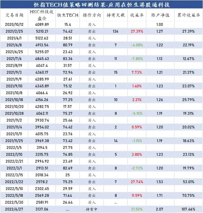 应用在港股通科技指数的效果跟恒生科技差不多,都是100%+。