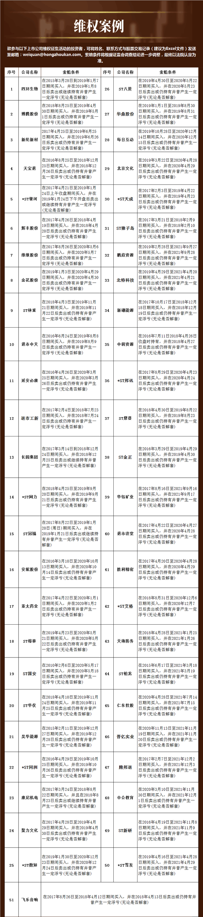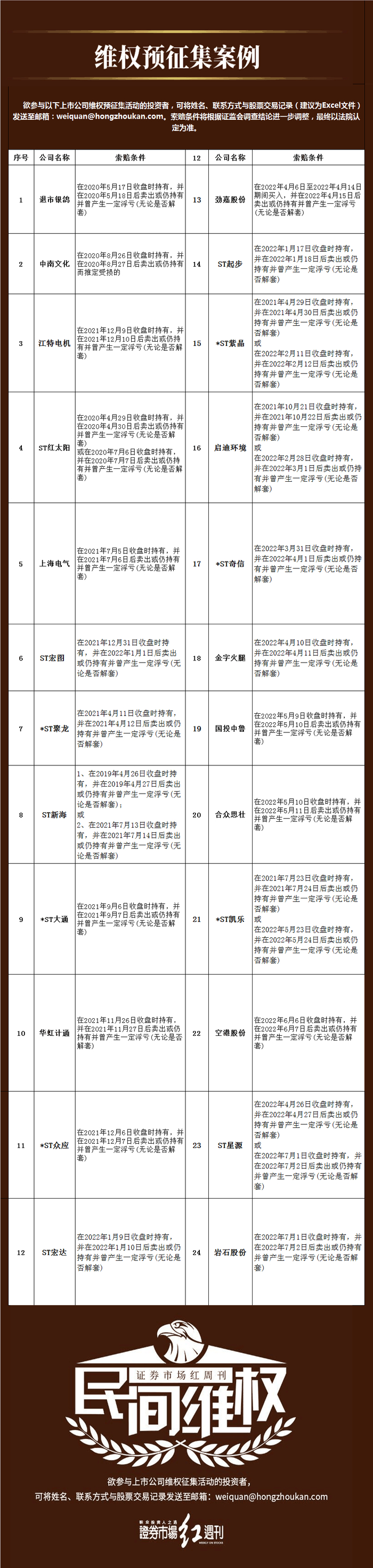 欲参与上市公司维权征集活动的投资者,可将姓名、联系方式与维权个股交易记录发送至邮箱: