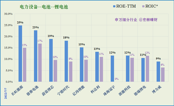 锂电池行业毛利率较低,竞争激烈,ROE随高,但投入资本回报率不高,净资产收益率多是加杠杆提升。