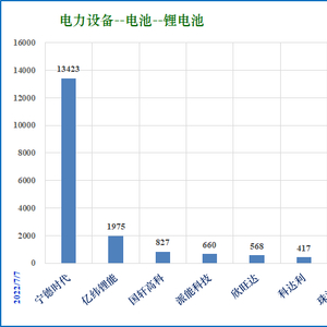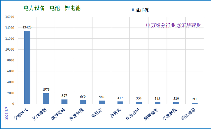 总市值前三:宁德时代1.34万亿、亿纬锂能1975亿、国轩高科827亿。