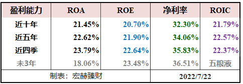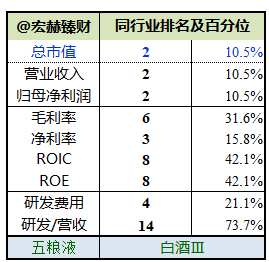 五粮液 作为浓香市值龙头,资本回报率(ROIC&ROE)排在第8位。