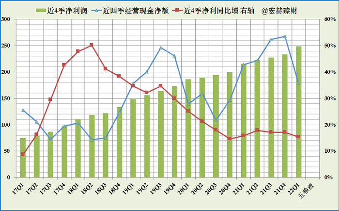 蓝色柱图持续在红色折线上面显示净利润含金量较高。