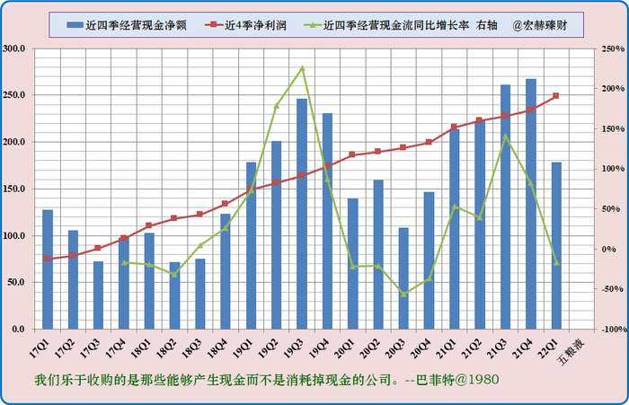 蓝色折线持续在绿色柱图上边及以上显示净利润含金量高。