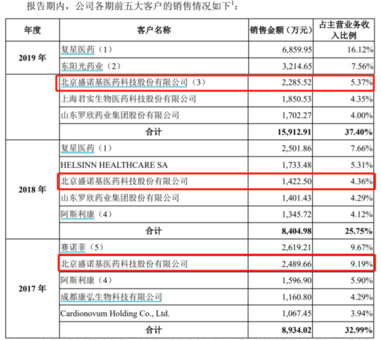 在诺思格注册稿2017-2019年前五大客户名单中,北京盛诺基分别位列第二、三、三位,分别贡献2489.66万元、1422.5万元和2285.52万元收入;而在盛诺基的前五大供应商数据中,对诺思格(长沙)+诺思格(北京)2017-2019年的合共采购额为4005.66万元、1836.84万元、485.1万元,呈现大幅下滑态势,且与诺思格每年的数据都出入较大。