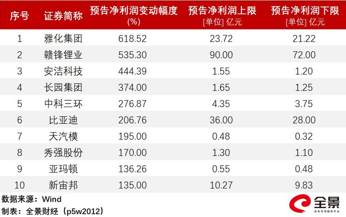 其中,雅化集团为“预增王”,预计中报净利润范围为21.22亿元~23.72亿元,增长幅度高达618.52%。其次为赣锋锂业、安洁科技、长园集团,预计中报净利润的增长幅度均超300%。