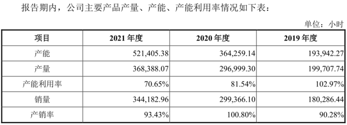 同时,由于驻外生产模式的客户均固定,在对应客户需求不足时也无法将产能应用于其他客户的产品生产。2019-2021年,公司的产能利用率分别为102.97%、81.54%和70.65%,就呈现连续大幅下滑的趋势。