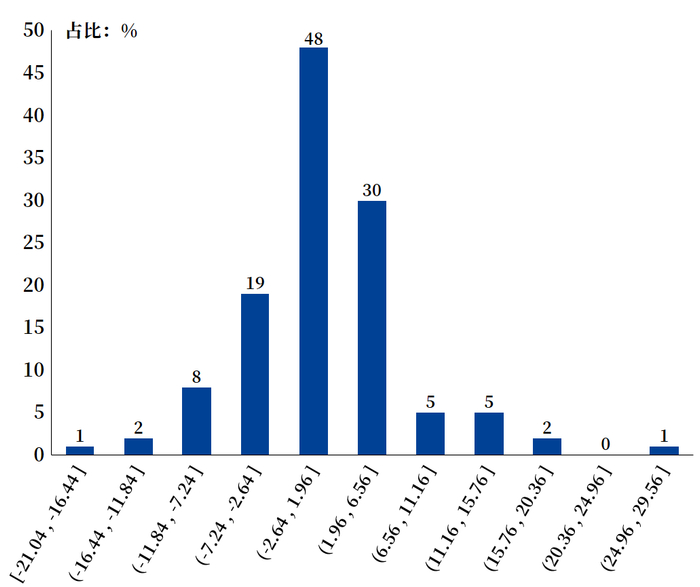 近十年沪深300月涨跌幅分布直方图(单位:%)