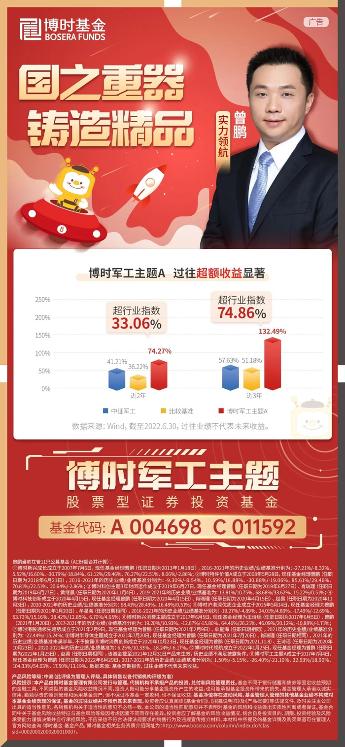 想要投资军工,那博哥家的博时军工主题基金绝对不能错过,做为一只“纯正的军工基”,该基金聚焦军工主题相关优质上市公司带来的投资机会,把握中国军工产业发展的长期繁荣态势。