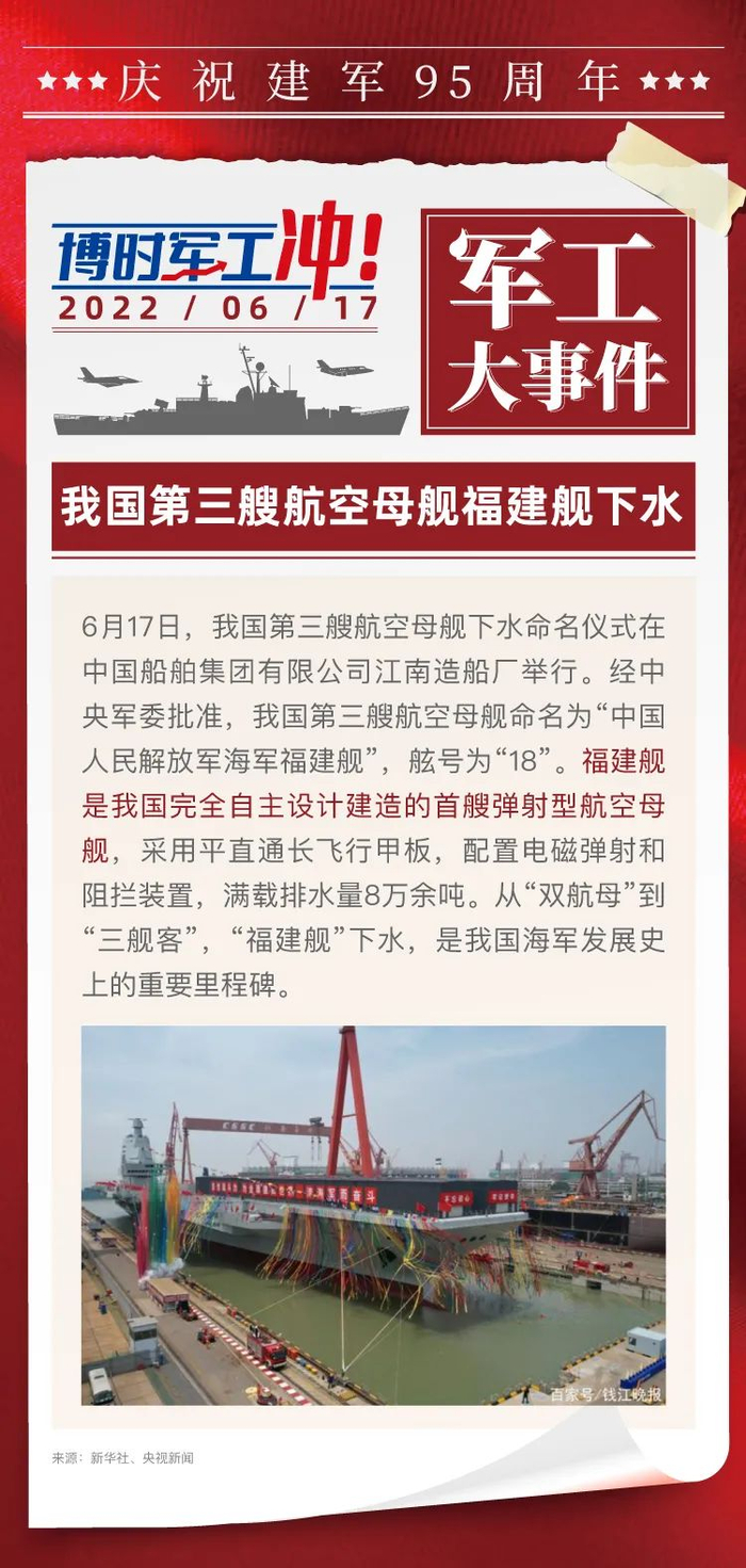 我国完全自主设计建造的首艘弹射型航空母舰-“福建舰”顺利下水,首架自主研制的第一代喷气式干线客机C919成功首飞,中国空间站首个科学实验舱成功问天,多个北斗全球卫星导航系统建成开通,中国军工领域,发展蓬勃向上。
