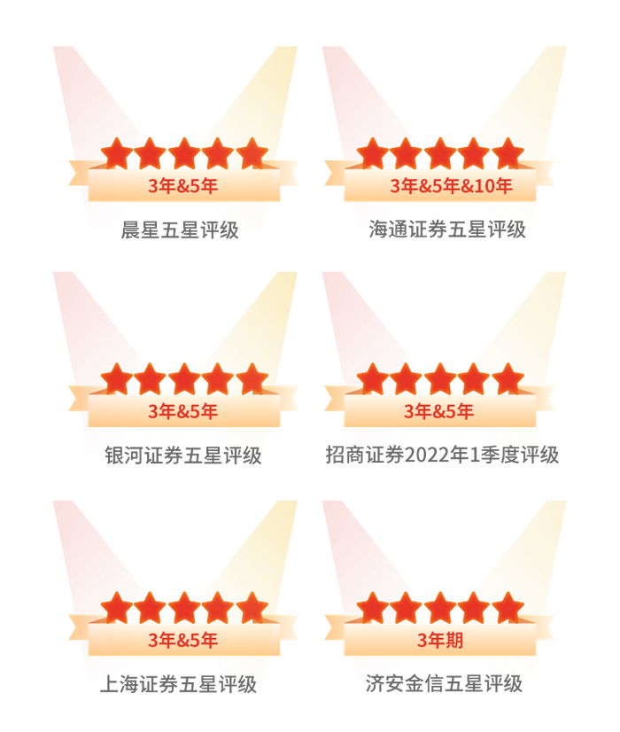 五星评级来源:晨星评级,截至2022-7;海通证券,截至2022-7-29;银河证券,截至2022-6-3;招商证券,截至2022-4-12;上海证券,截至2022-3-31;济安金信,截至2022-3-31