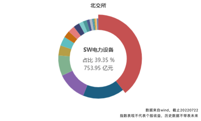 截至 2022 年 7 月 15 日,共有 17 家“专精特新”企业在北交所上市,数量占比 16.5%,流通市值占比 7.6%有较大提升空间。从申万一级行业分类上看,北交所的前四大行业分别是电力设备(39.35%)、基础化工(16.85%)、机械设备(11.79%)、医药生物(8.24%),行业成长属性和科技属性强于主板。