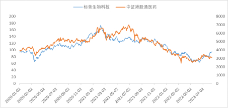美国生物科技板块的强势上涨,引发了市场对港股医药板块的高度关注,因港交所作为全球第二大生物科技集资中心,医药板块走势与美股逐渐趋同。XBI指数此次反弹期间,中证港股通医药卫生指数也获得20.1%涨幅,跑赢同期恒生指数1.1%涨幅。