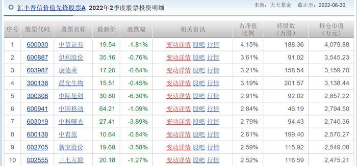 以二季报的前十大持仓为例,价值先锋持有的低估值成长股包括伊利股份晨光生物新宝股份、康德莱、中际旭创、中科曙光。共同特点是,估值处于自身的低位,同时有一定成长性。