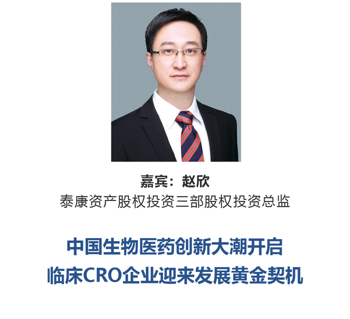本期巡礼,我们邀请到泰康资产股权投资三部股权投资总监赵欣,聊一聊在生物医药板块,泰康深挖产业链布局临床CRO企业ClinChoice昆翎,同时分享泰康对产业链中头部企业的投资思路。